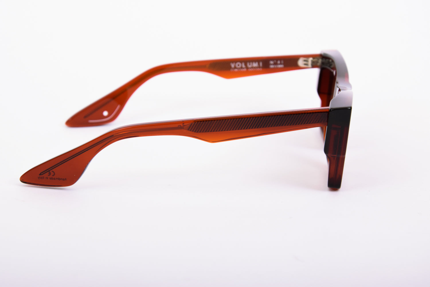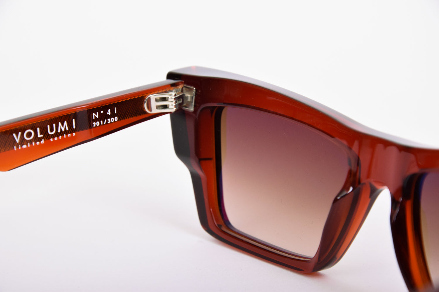 Il modello Volumi N°4 I è un'edizione limitata numerata, numero 201/300 prodotto a livello mondiale. Lenti di colore marrone sfumato con antiriflesso interno.