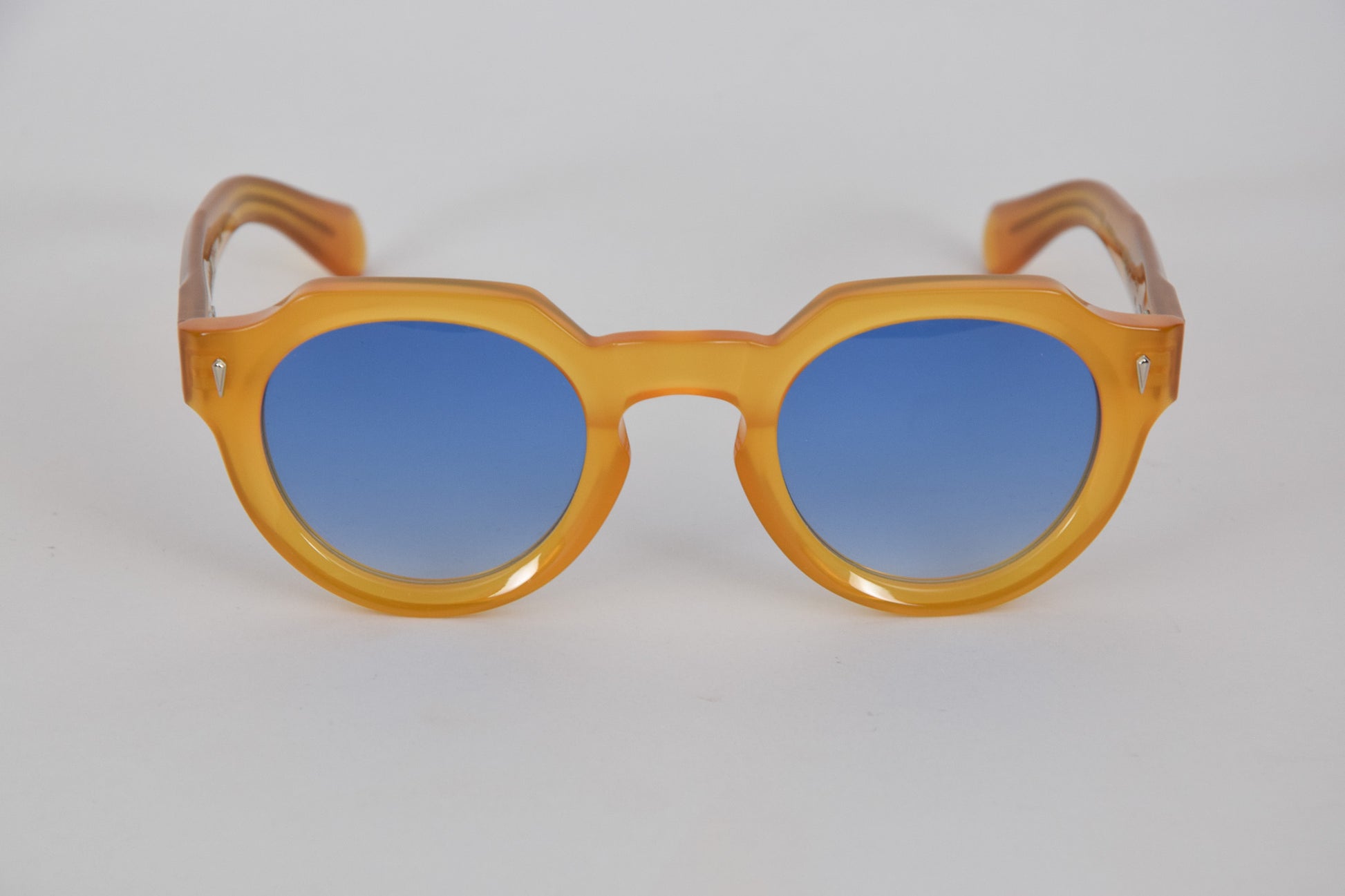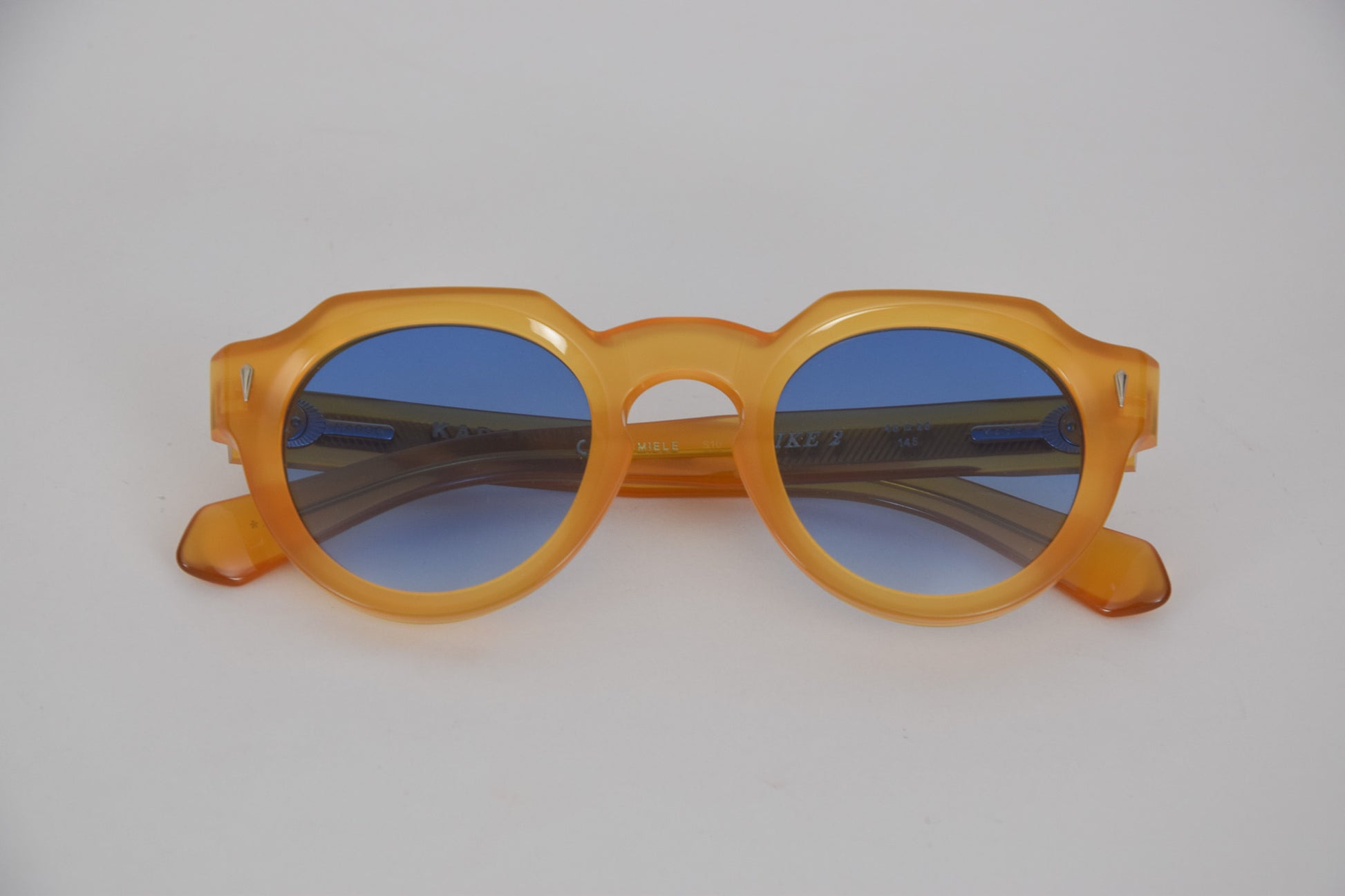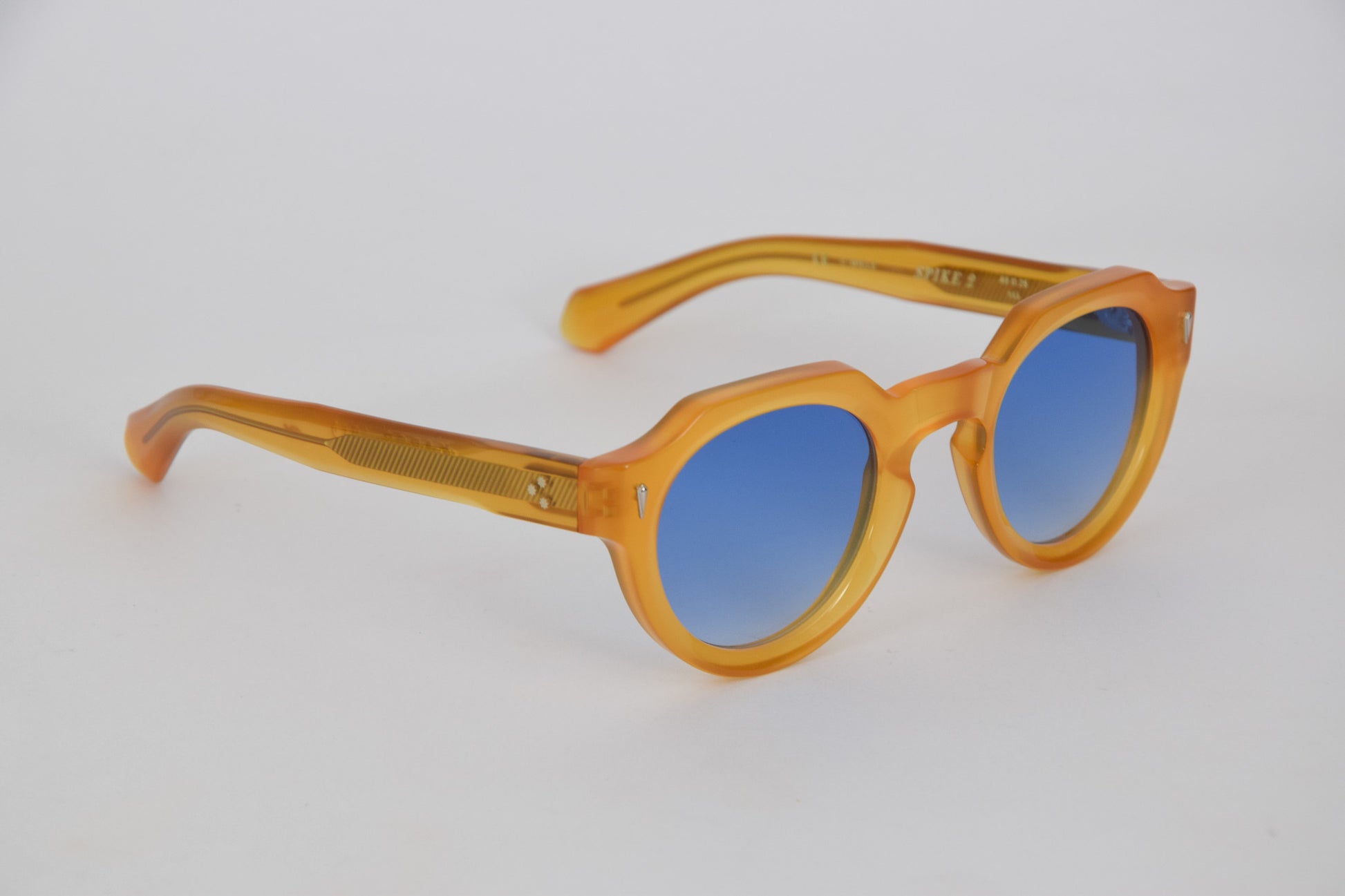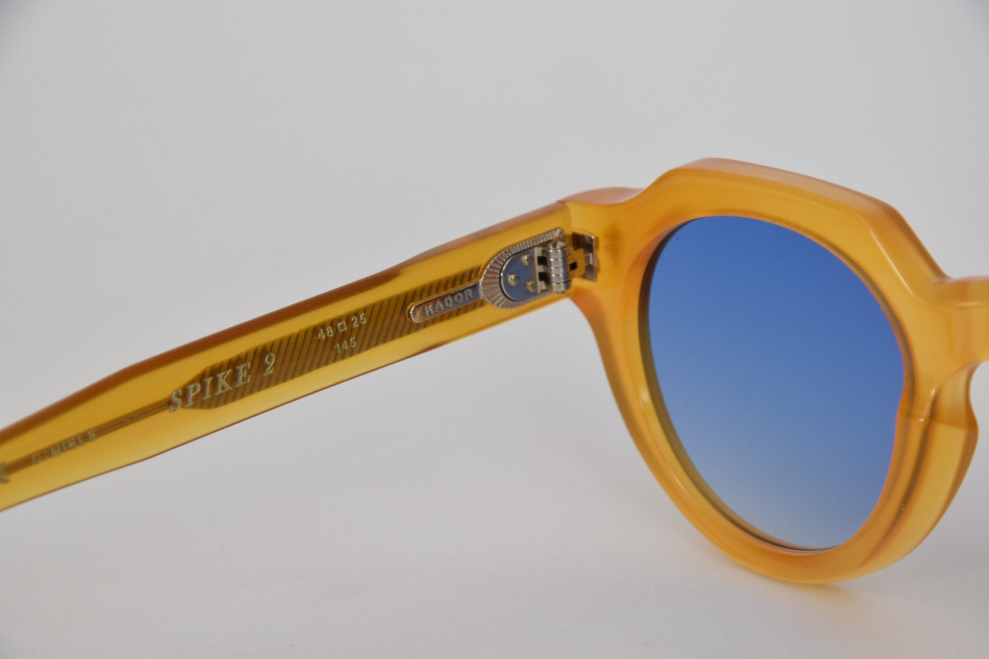 Occhiali da Sole Kador in celluloide corposa e resistente. Il modello Spike S è una vero e proprio Occhiale da Collezione con lenti blu sfumato inserite all’interno dell’occhiale.